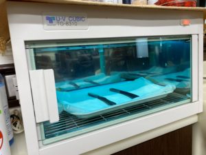 ハサミや剃刀は塩素消毒や紫外線消毒をして消毒しております。